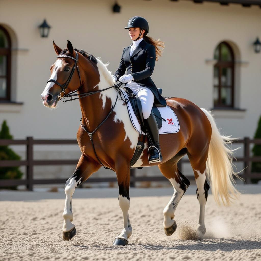 v pozadí - 1d portrét koně Arabský bílý pinto, ve stylu tmavě hnědé, hříva s copánky, drezura bez lidí-žádní lidé jen kůň, před portrétem kůň černý a bílý Arabský a běží po podlaze z chromu-stříbrná a bílá, inovativní design stránky, klidné okamžiky zachycené barvou, celoplošná kompozice, elegantní kaligrafie, ...