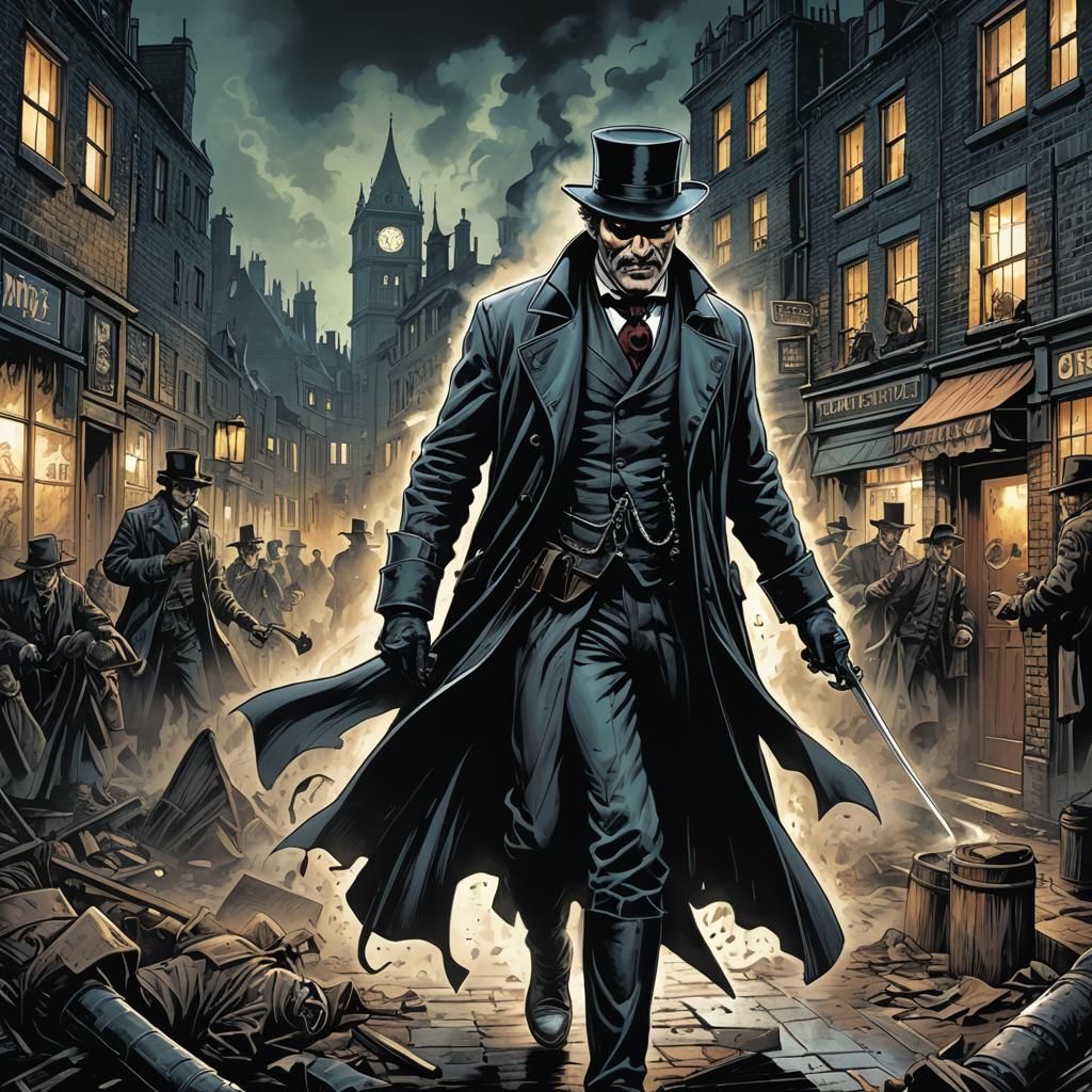 A comic book image of Jack the Ripper. The smooth, perfect art style is reminiscent of modern comic art.