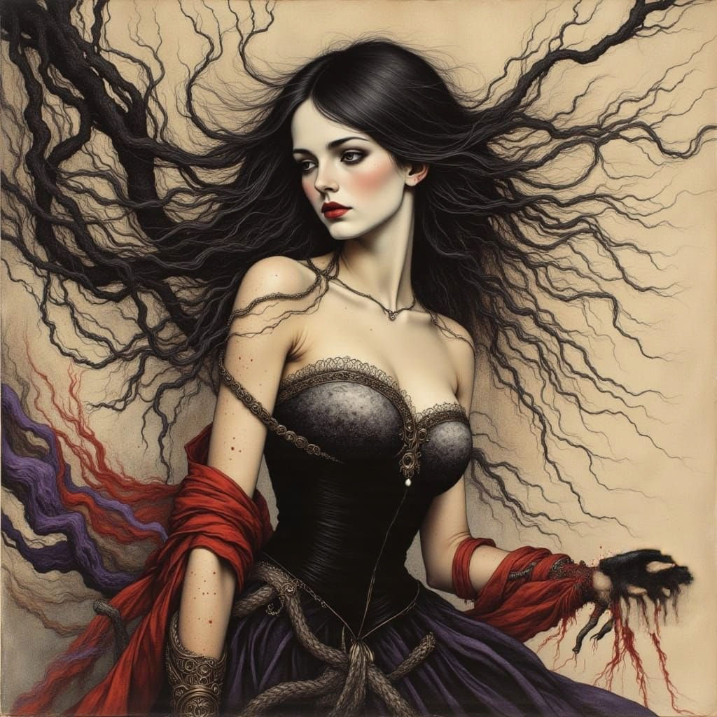 Generate unique dark fantasy images with our free AI generator. Explore themes of obsession and infamy today!