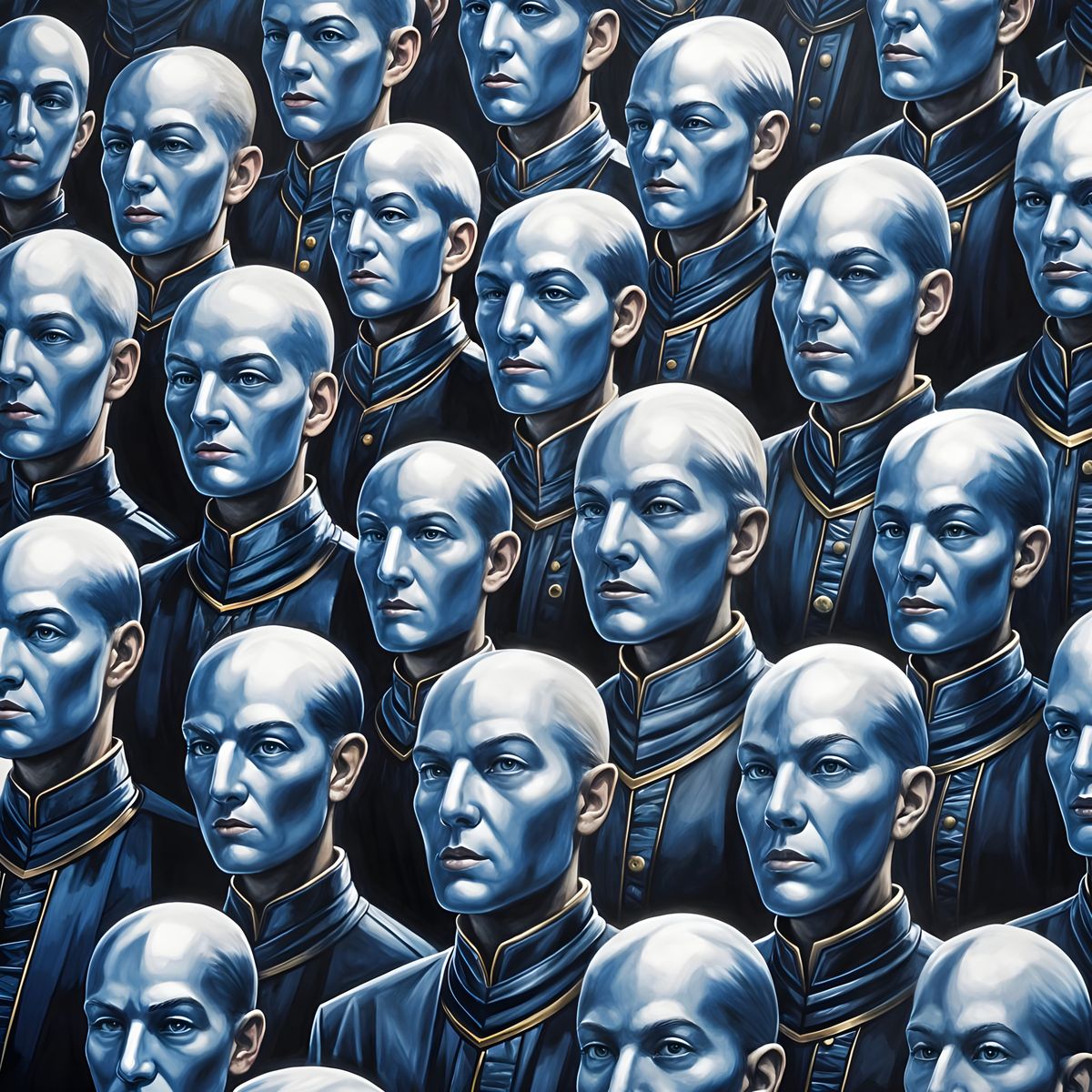 Explore themes of conformity and lost individuality. Easily create your own AI images for free, reflecting societal changes.