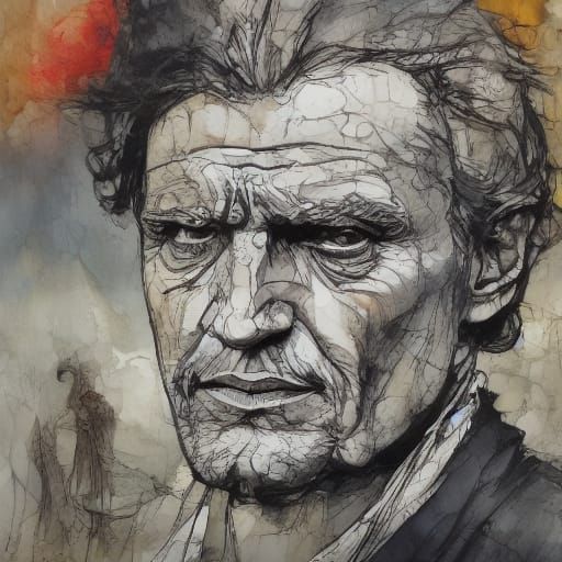 This image depicts Achilles rendered with intense chiaroscuro lighting, creating a dramatic and high-contrast effect. The style suggests a blend of classical Roman influence and bold ink work.