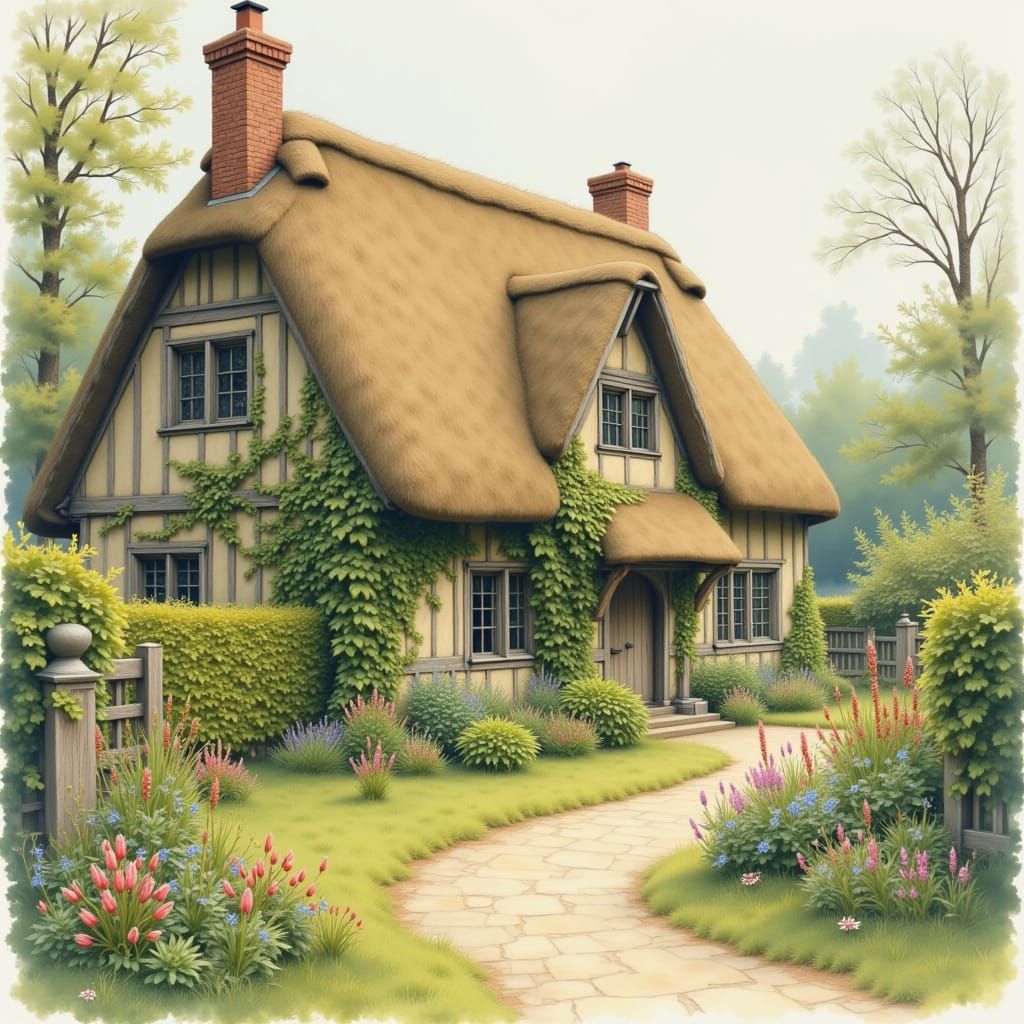 Create your own vintage watercolor paintings of charming English cottages with our free AI image generator. It's easy and fun!