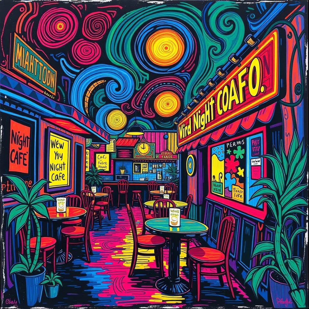Transform Van Gogh's iconic Night Café into a neon-lit masterpiece with our AI image generator. Easy, free, and flexible.