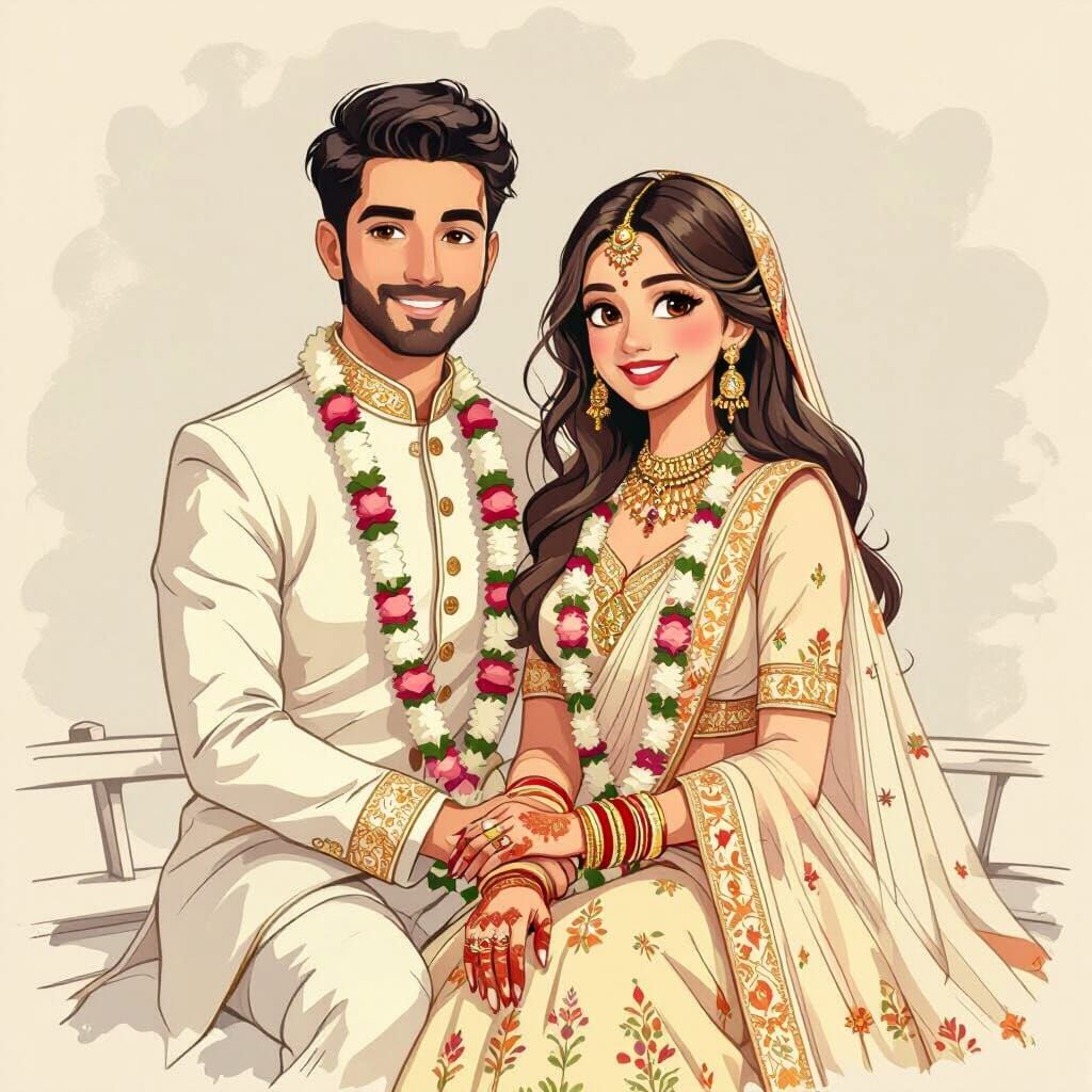 Create your own stunning images of beautiful couples in Indian attire. It's easy and free with our AI image generator!