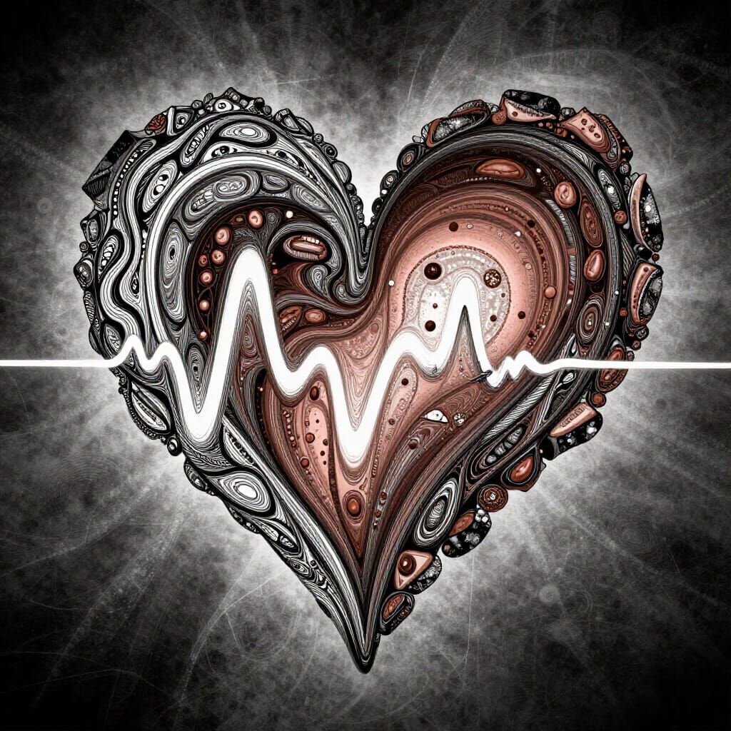 This image showcases a complex abstract vector fractal in a Zentangle style. It features intricate black and white linework with soft 3D shading, representing duality and cosmic balance.
