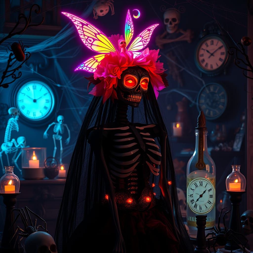 Design your own unique Dia De Muertos and Halloween-themed art for free with our AI image generator.