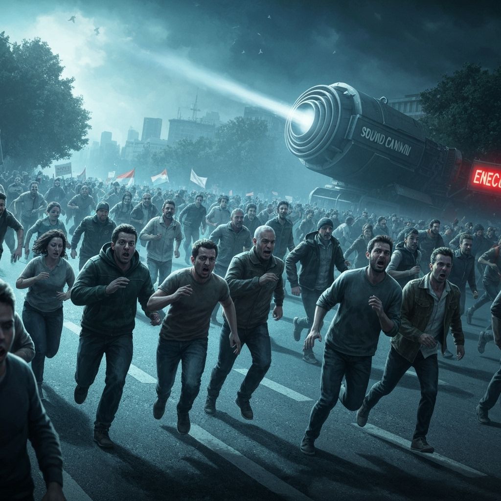 The secret weapon "Sound Cannon" was recently used in a record-breaking large protest against the regime of Aleksandar Vučić, in Belgrade, Serbia. People are running in panic in all directions, they don't know what hit them.