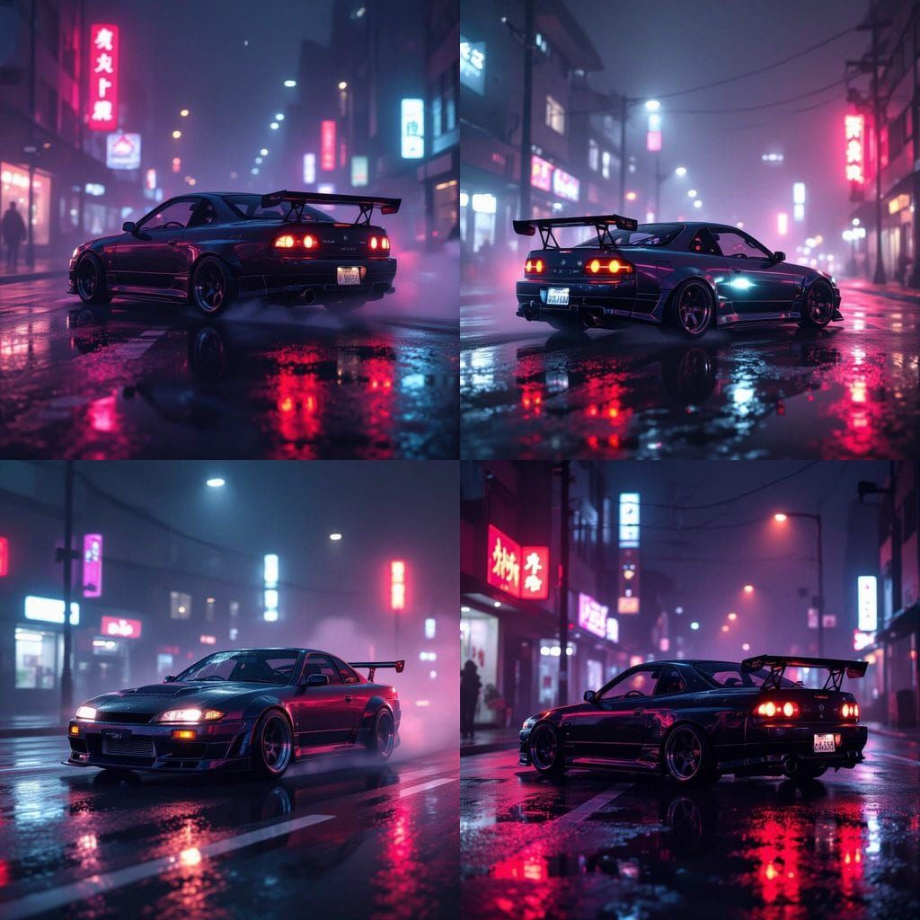 Design unique images of Japanese drift cars in moody neon cityscapes. Free and easy AI image generation.