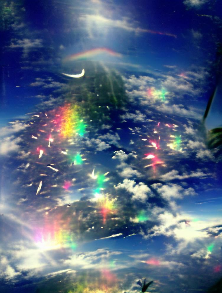 This image shows a vibrant rainbow arcing across the sky, rendered with a sparkling effect. The colors are vivid and create a sense of wonder.