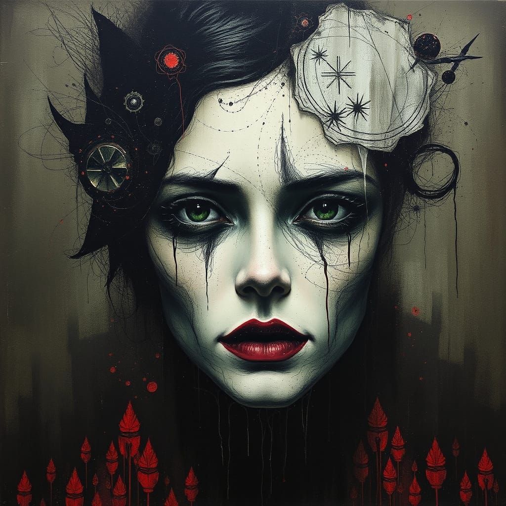 A dramatic image reminiscent of woodcuts and dark surrealism. The artwork evokes a sense of foreboding through intricate linework and stark contrasts.
