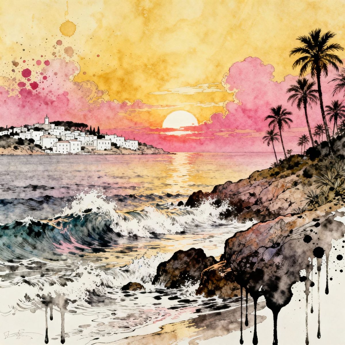 Generate your own Ibiza sunrise images with intricate details and ambient lighting using our free AI art generator.