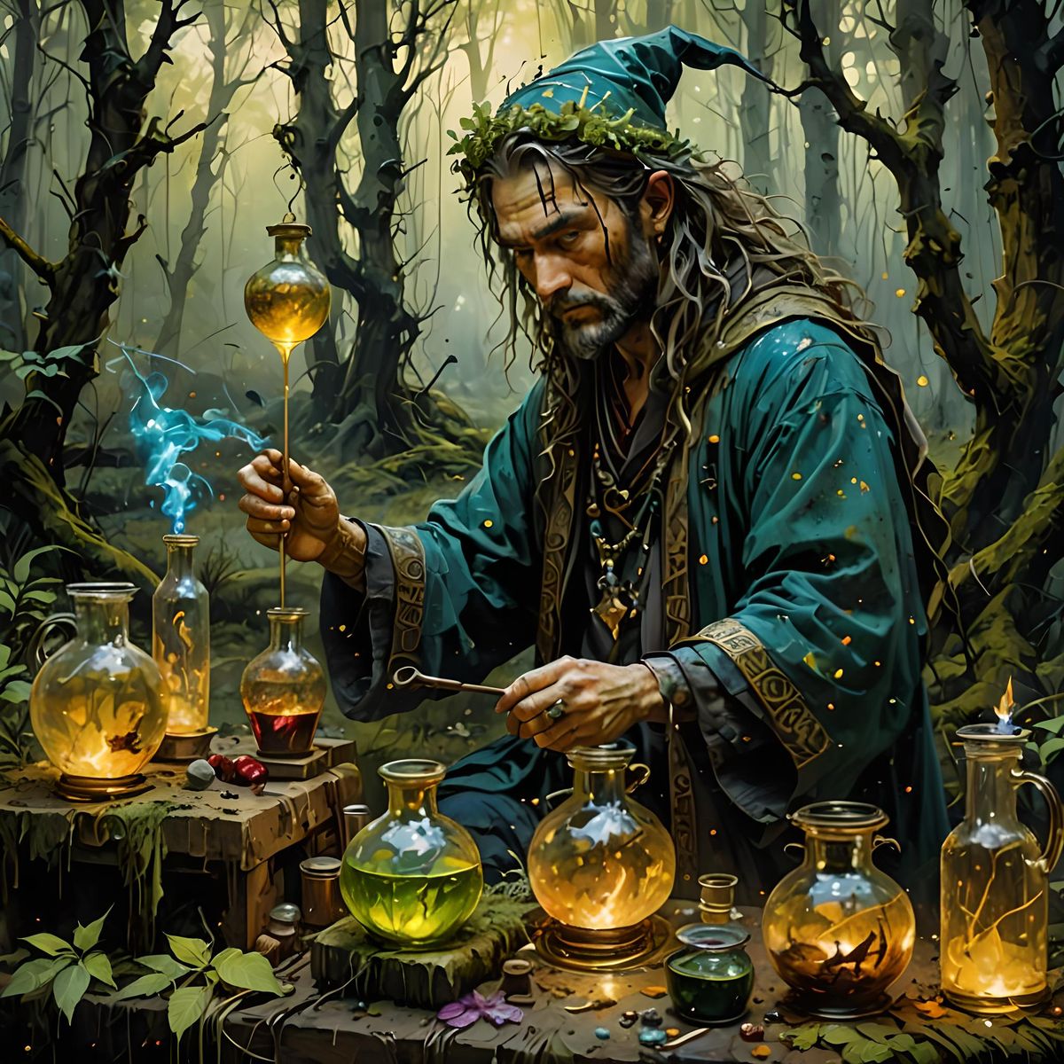 Is he playing Ave Maria by wetting his fingertip in vinegar and then rubbing it around the lip of the glasses?