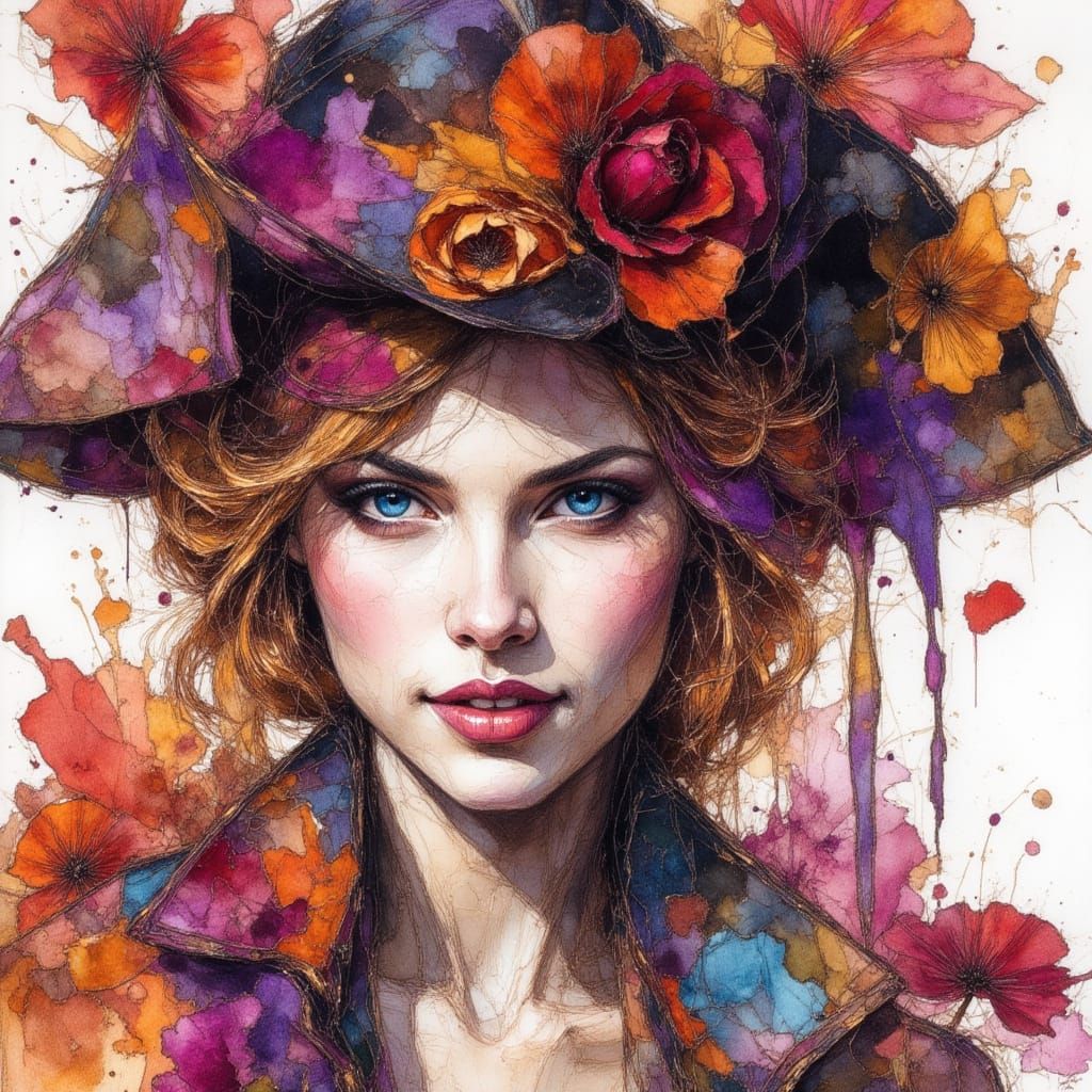 A close-up image of a pirate rendered as an alcohol ink sketch. The artwork evokes a surreal fantasy style with vibrant summer colours.