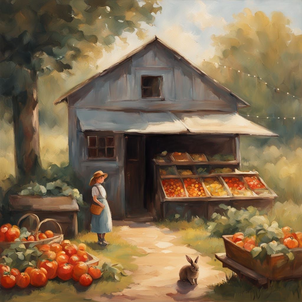 Easily generate charming farmstand images with our free AI. Customize crops, setting, and time of day.