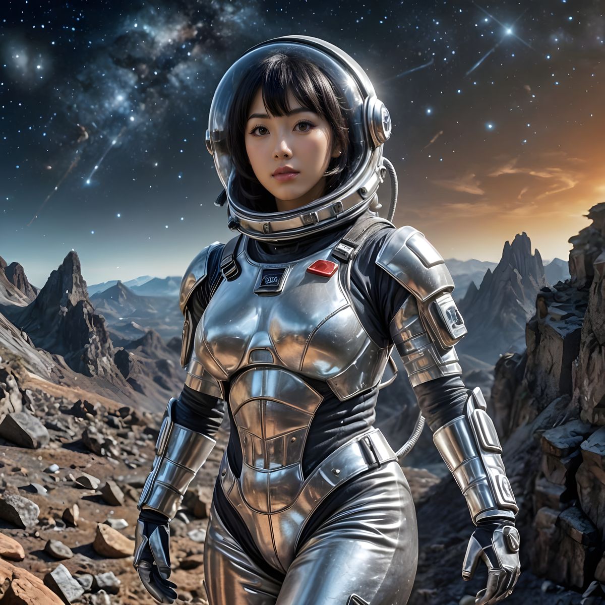 A stunning close-up portrait of a young Japanese space explorer floating in the vastness of space, surrounded by the breathtaking Carina Nebula, captured in exquisite 8K resolution with cinematic photography.