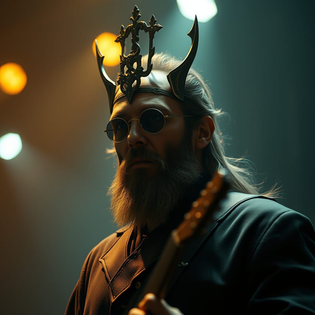This cinematic image captures the grandeur of King Crimson, evoking a moody, atmospheric mood reminiscent of a 35mm film still with subtle vignette and film grain, shot with dramatic lighting to perfection, in a style that blends the mastery of renowned cinematographers.
