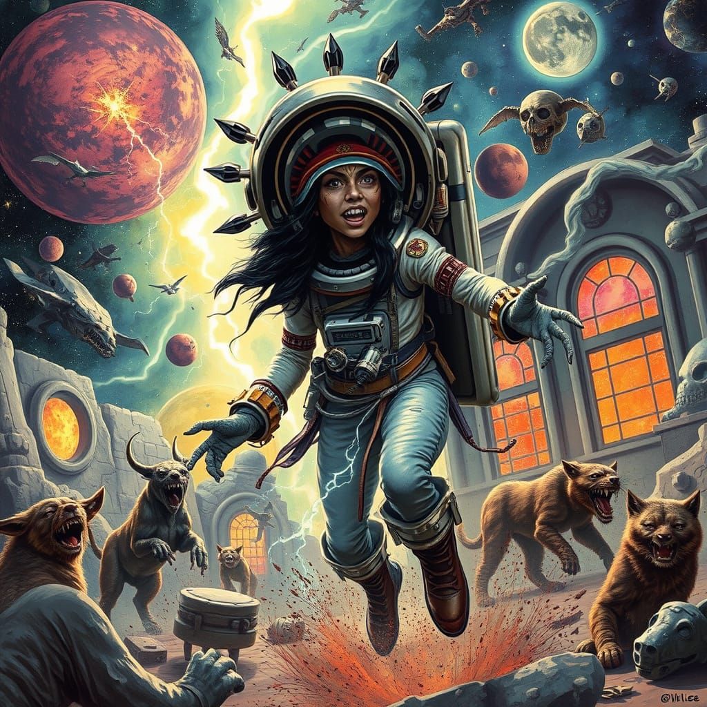 Envision a bone-headed Indian Alien crawling from her crashed UFO into a house at Casula, as all the Lightning Karma and wild animals run rampant. Suddenly, all truths are revealed expeditiously as Nirvana is realized once more.