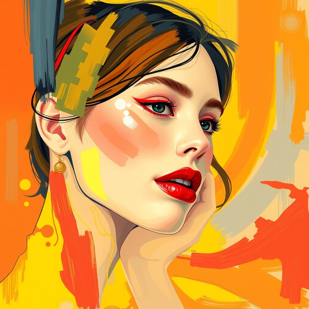 This image showcases a young woman amidst a kaleidoscope of vibrant colors, creating a visually striking abstract scene