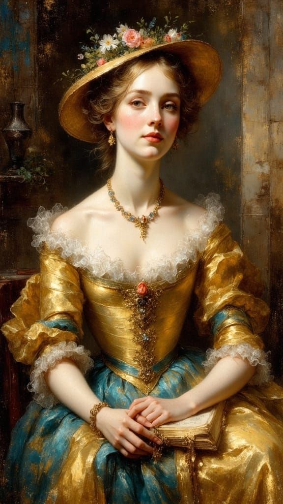 A portrait of a beautiful Irish woman from the 1800s. The image is reminiscent of impressionist paintings, with an ethereal and exquisite aesthetic.