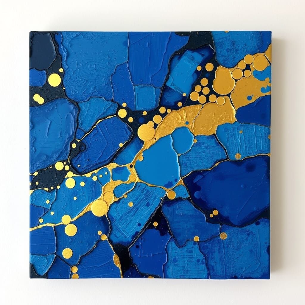 This image showcases a dynamic abstract piece featuring bold blue hues and textured impasto strokes, reminiscent of the beauty in brokenness.