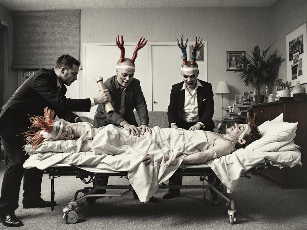 Smash them up in contorted situationist photomontage by bobby neel adams, robert ritchie, derek hess, wacky goober inflatavle soft parade lunatics from neighborworld, the woim toins in the thinless ...