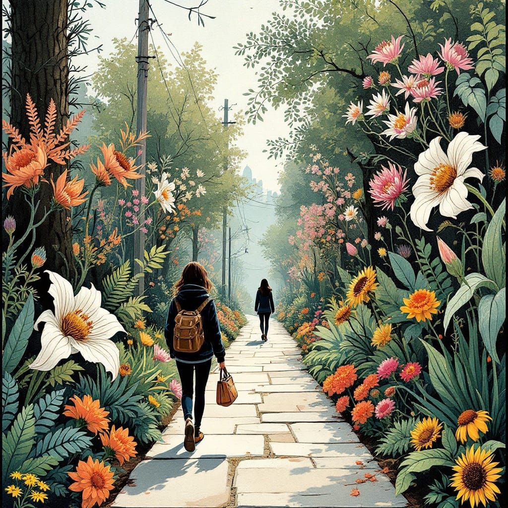 Create your own evocative images of quiet streets and sunlit paths with our free AI image generator.