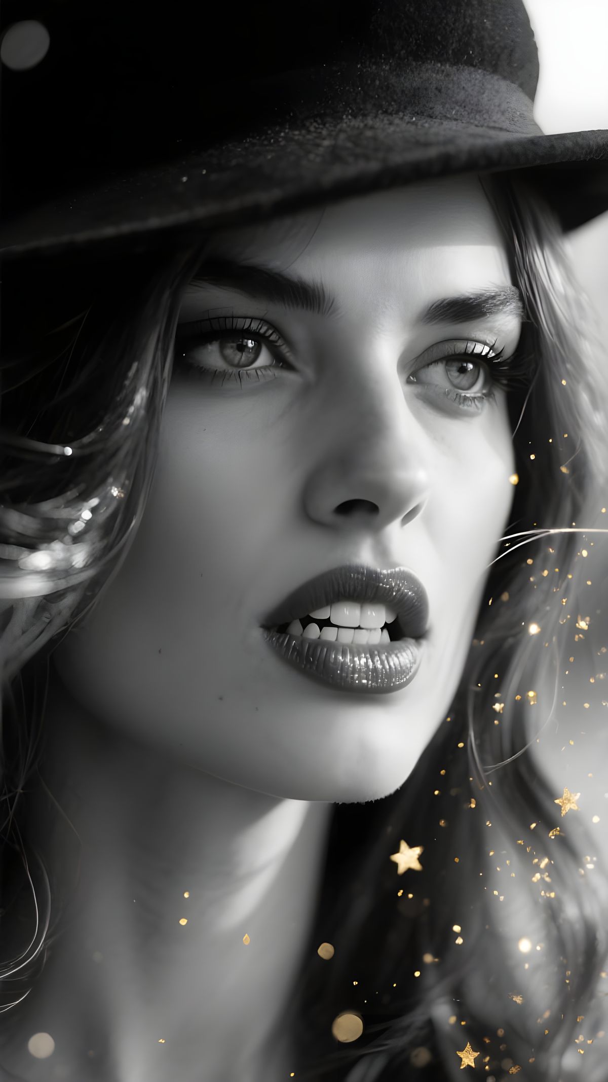 This image shows a striking monochrome portrait of a woman with Italian and French features, captured mid-snarl with intense emotion and sharp focus, presented in a cinematic 3D style.