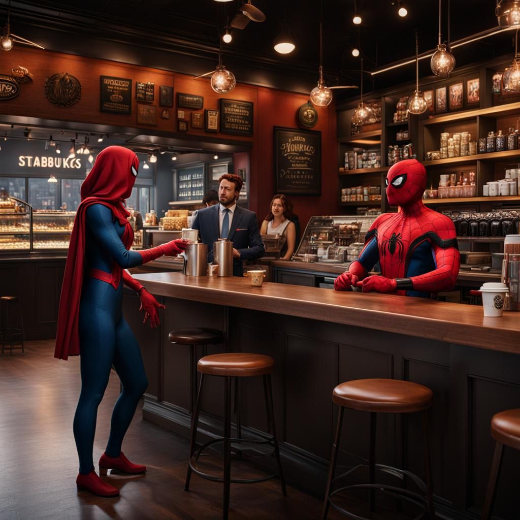 Spider-Man meets Mary Jane at Starbucks