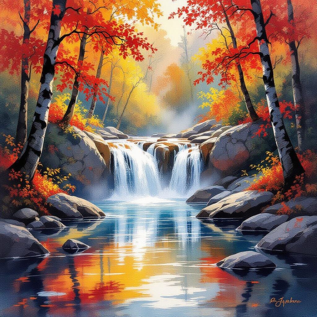 Easily generate stunning autumn waterfall images for free. Customize your creations with our intuitive AI tool.