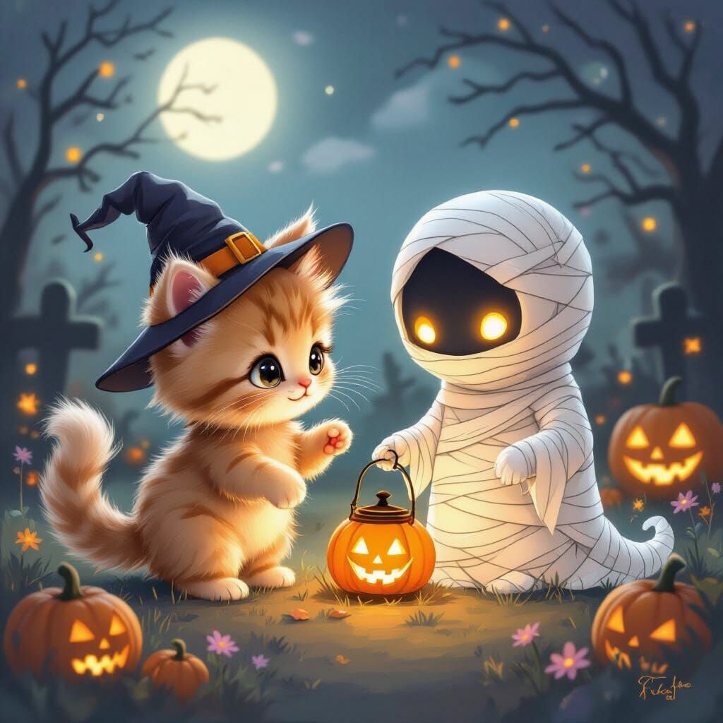 Generate adorable kitten and ghost pictures with our free AI image generator. Easy and fun!