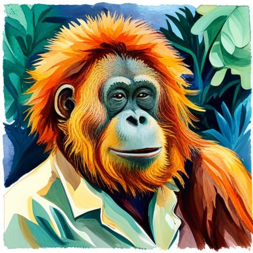 A vivid image of an orangutan chauffeur created with thick brushstrokes. The artwork evokes an impressionist masterpiece, rendered with impasto gouache and layered watercolors on canvas.