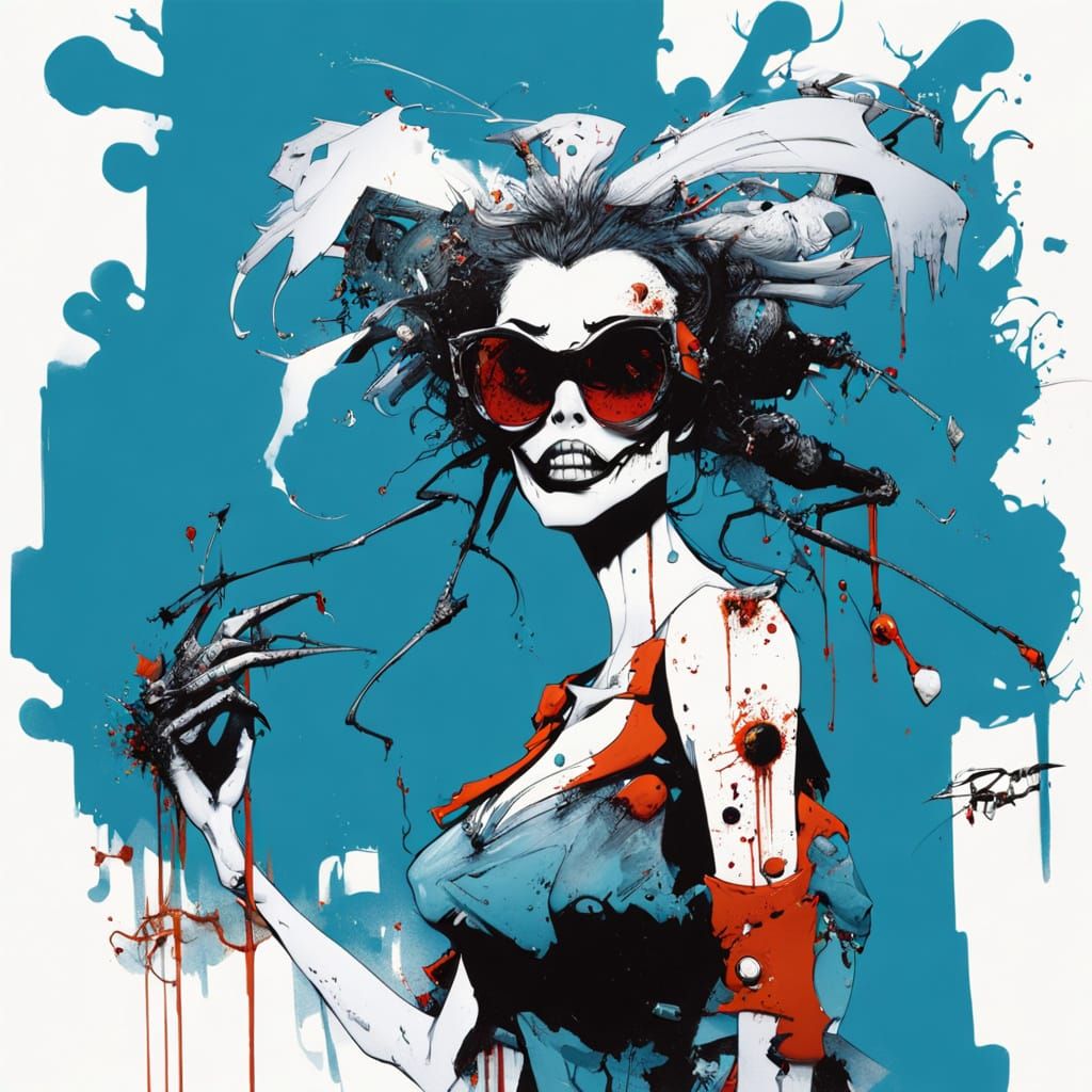 This image shows a whimsical portrait of a mutant girl, rendered in a style reminiscent of expressive, grotesque caricature art.