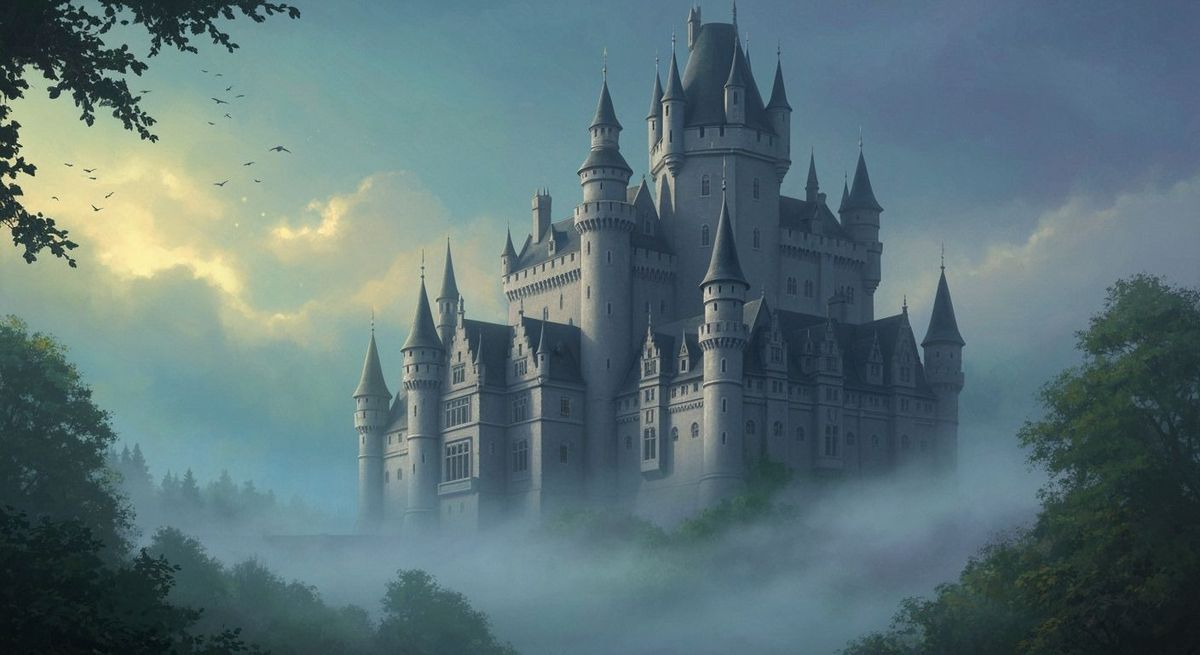A whimsical image of a vibrant lighthouse perched on a cliff overlooking the sea. The scene features cloud whales floating in the sky, rendered with impressionistic brushstrokes in soft watercolors and oils.