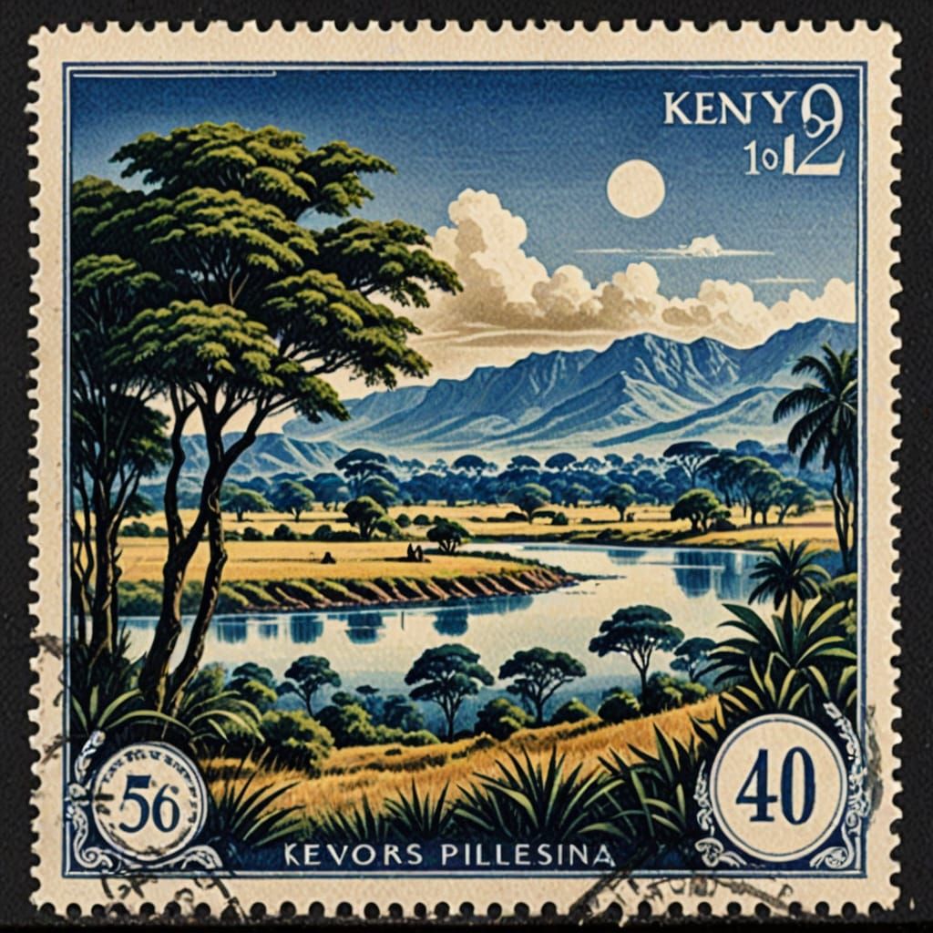 Create custom colonial-style postage stamps with our free AI image generator, featuring African landscapes and vintage designs.
