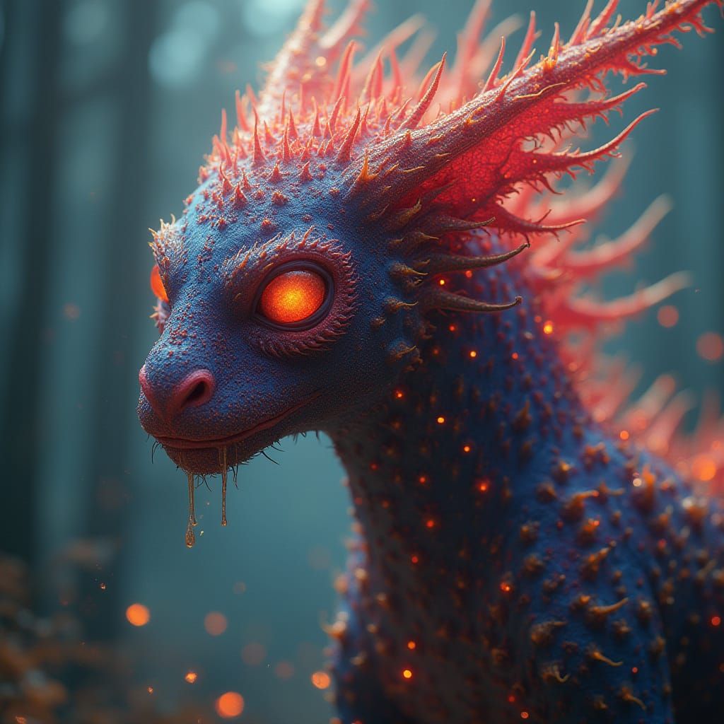 A vibrant image of the fantastical creature Yefa Rokdet in a mystic realm. The image features intricate details and luminous colors, as 3D rendered digital art.