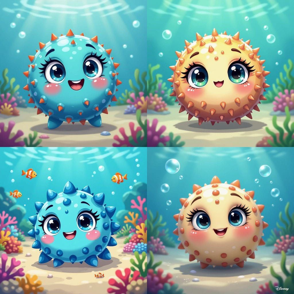 Generate your own unique cartoon style sea urchins and other marine life with our easy-to-use AI image generator.