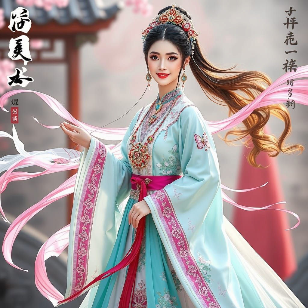 Easily design your own elegant princess images with our free AI image generator, featuring beautiful Hanfu dresses and accessories