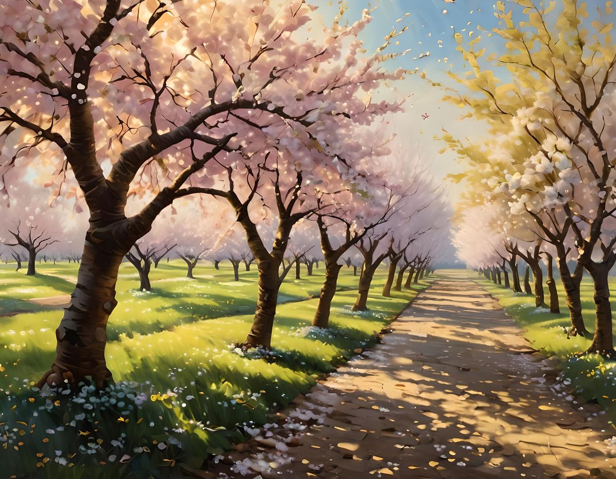 Easily generate your own dreamy orchard oil paintings with our free AI image generator. It's fun and flexible!