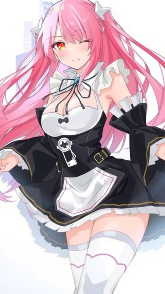 A dynamic anime woman strikes a heroic pose against a vibrant cityscape. This manga-style image features bold lines, cel-shaded textures, and a high-contrast, deep color palette, in a manga aesthetic.