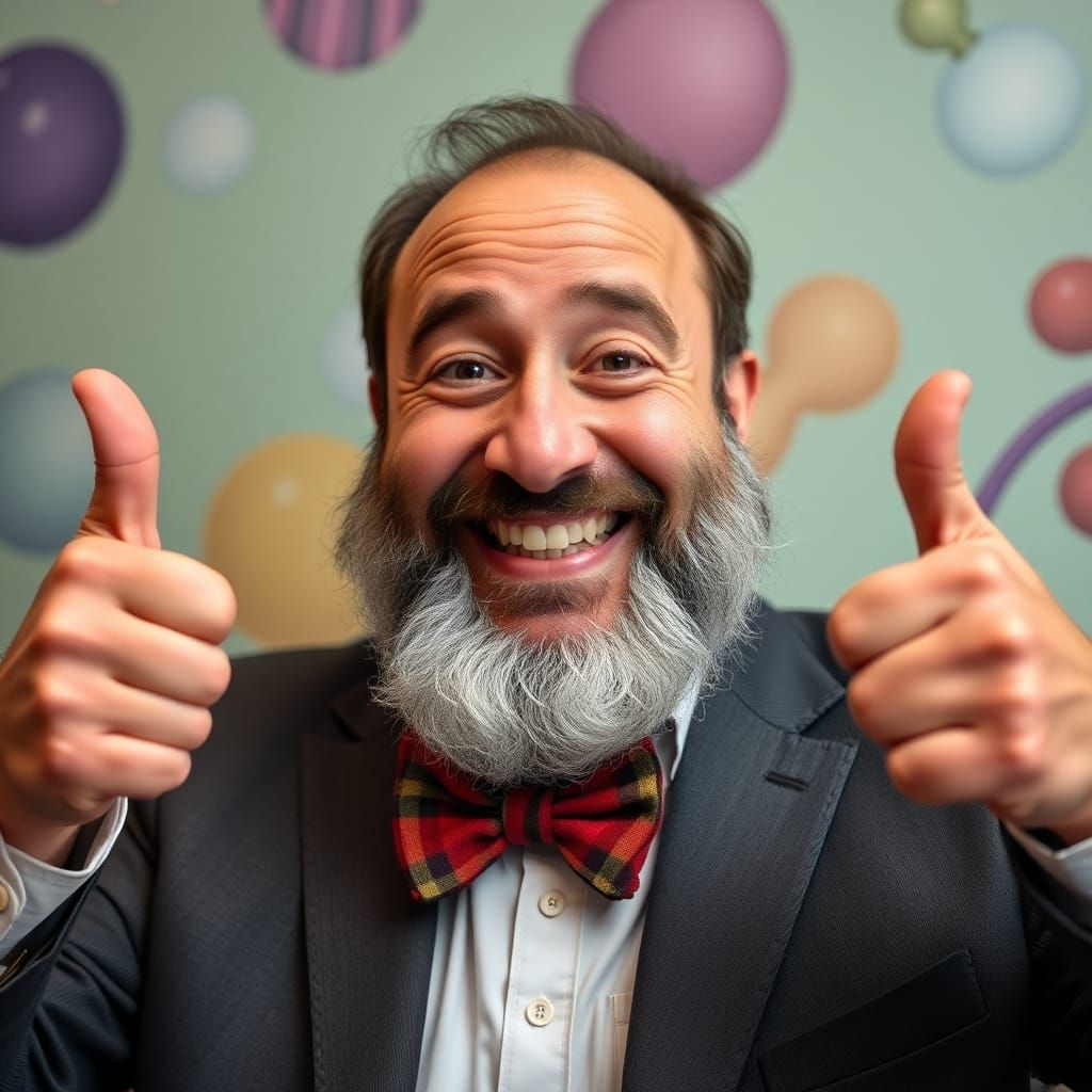 This image shows Gad Saad smiling and giving a thumbs up, rendered in a cartoon style reminiscent of Spongebob Squarepants. The image captures a cheerful and lighthearted mood.