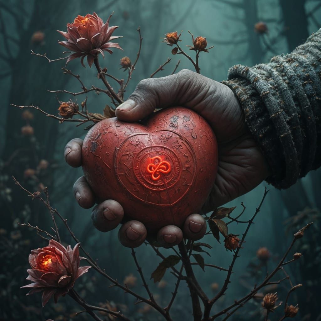 A close-up image of a spectral viking warrior's hand holding a glowing heart. The fantasy art features dynamic lighting and intricate details to create an ominous atmosphere.