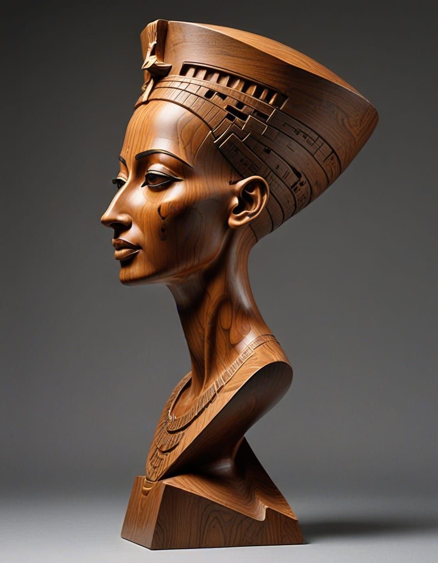 teak wood bust of Nefertiti. (Amarna art. Side view:1.6)