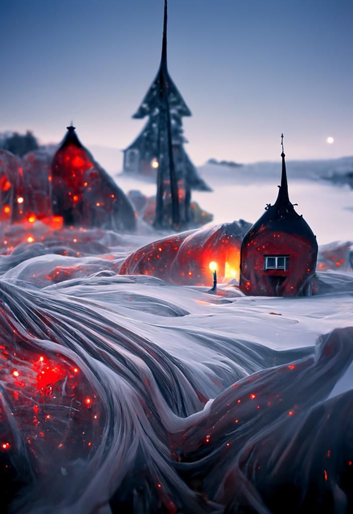 Snowy swedish town with sparkly snow by Roberto Aizenberg, Peter Gric, James Gurney and Edna Andrade