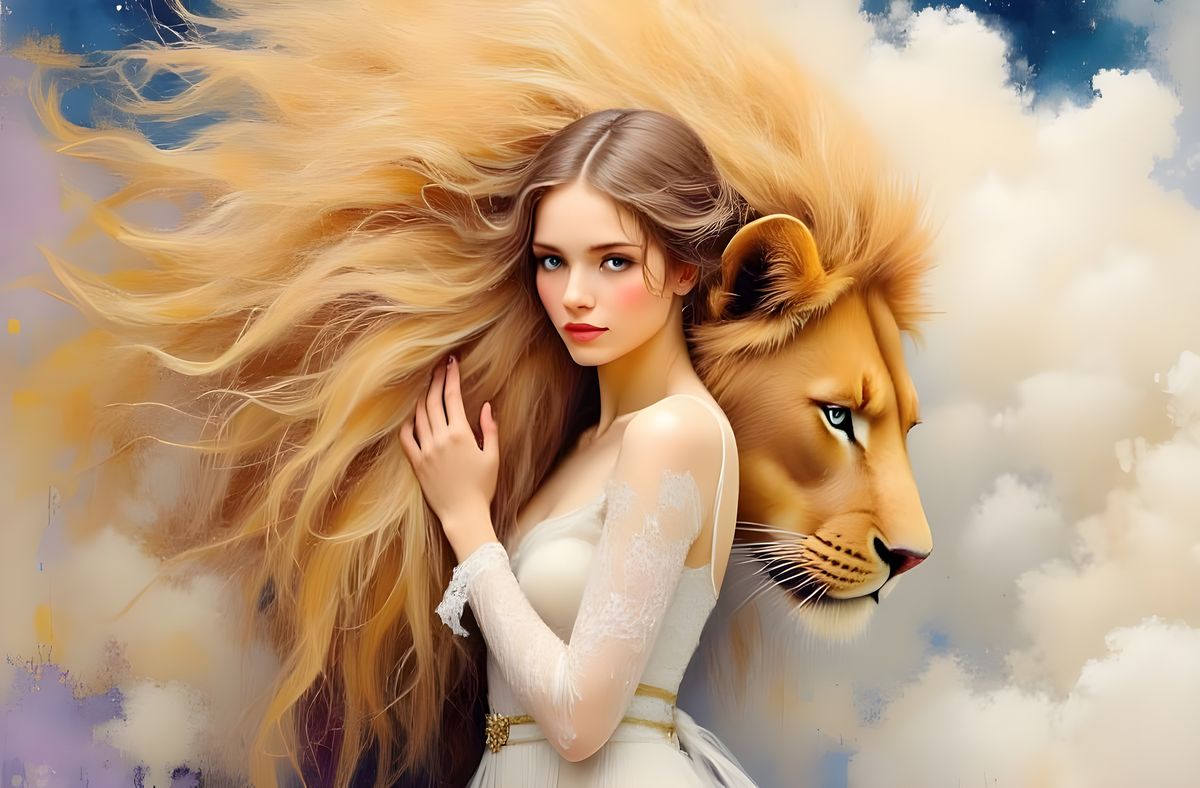 <lora:Neurographic Flux:1.0> <lora:Earth and mystic:1.0> <lora:softOilPainting:1.0> <lora:SoftPastel:1.0> A surreal illustration of a woman with a detailed face and long, flowing hair, embracing a majestic, lion in a dreamlike, ethereal landscape. The landscape is filled with floating islands and swirling ...