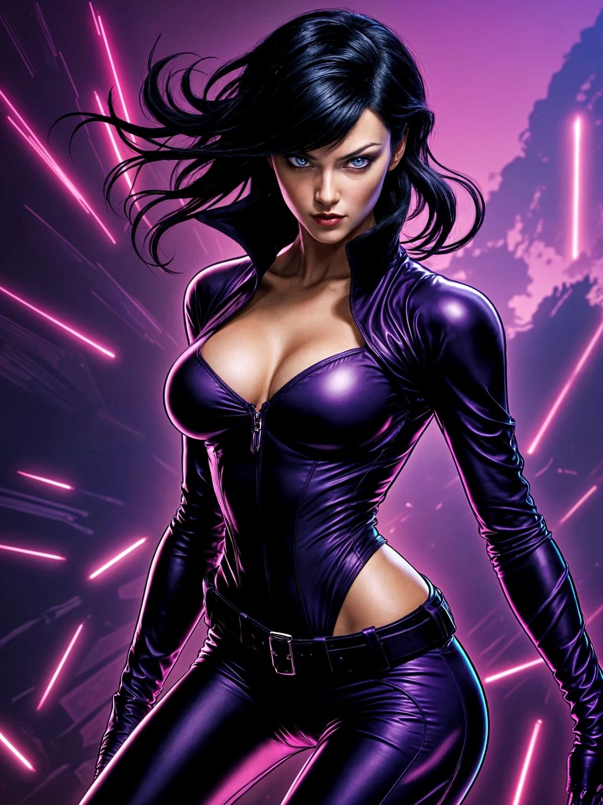 This image captures Juri Han from Street Fighter in a striking dark purple outfit, showcasing her fierce personality and distinctive features.