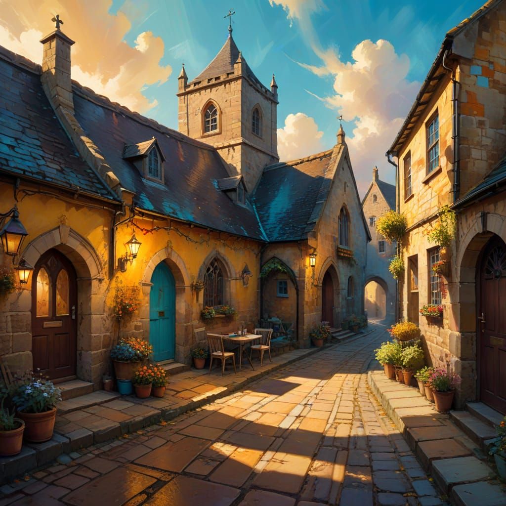 Easily generate your own village images with our free AI image maker, perfect for creating idyllic scenes of stone cottages and quaint tearooms