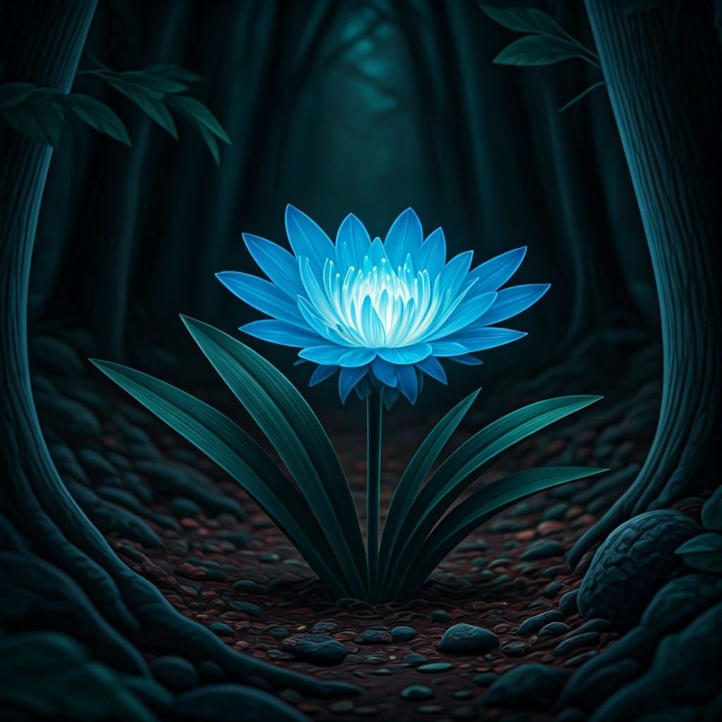 This piece is absolutely magical! The glowing blue flower in the dark forest feels like a symbol of hope and mystery, shining bright in the heart of the unknown. The atmosphere is so calming and enchanting—love it! 🌌