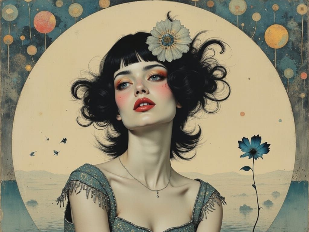 Inspired by the styles of Maxfield Parrish and The Great Gatsby, create your own Art Deco masterpieces with our free AI image generator