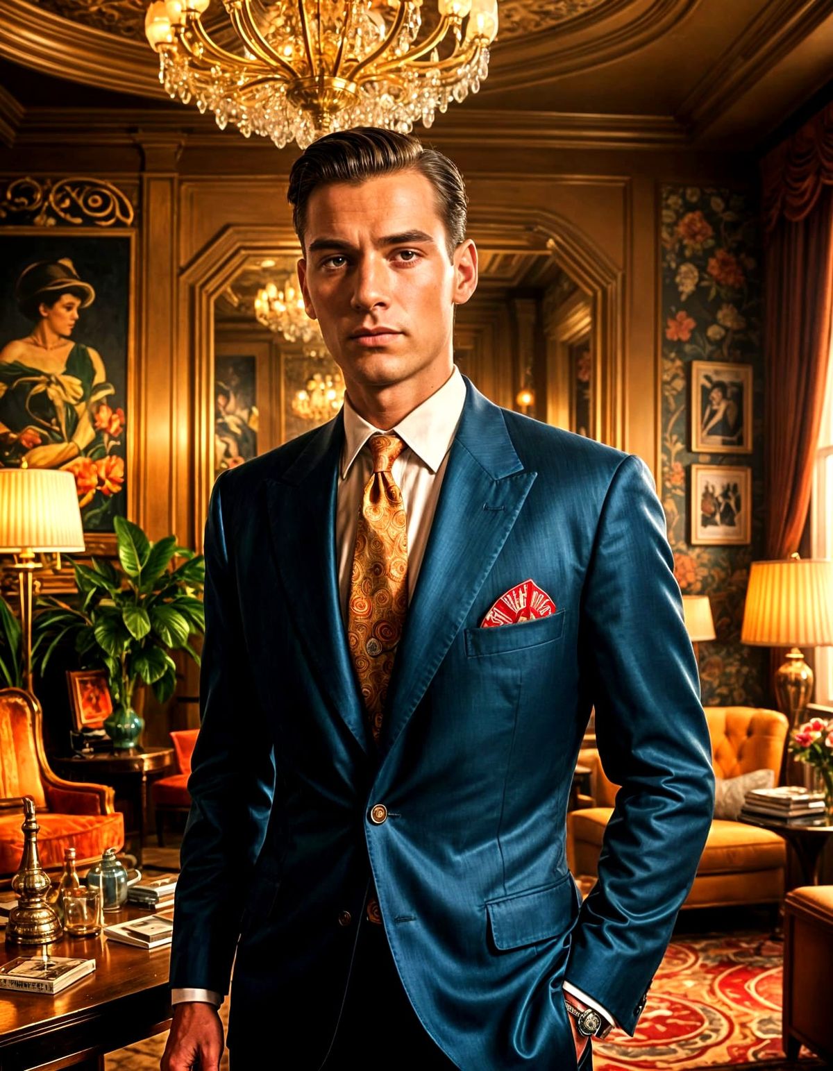 This image shows a digitally created retro-style LIFE magazine cover from the 1950s. The cover depicts two stylish men in a luxurious New York penthouse, showcasing flamboyant 1950s fashion in a maximalist aesthetic.