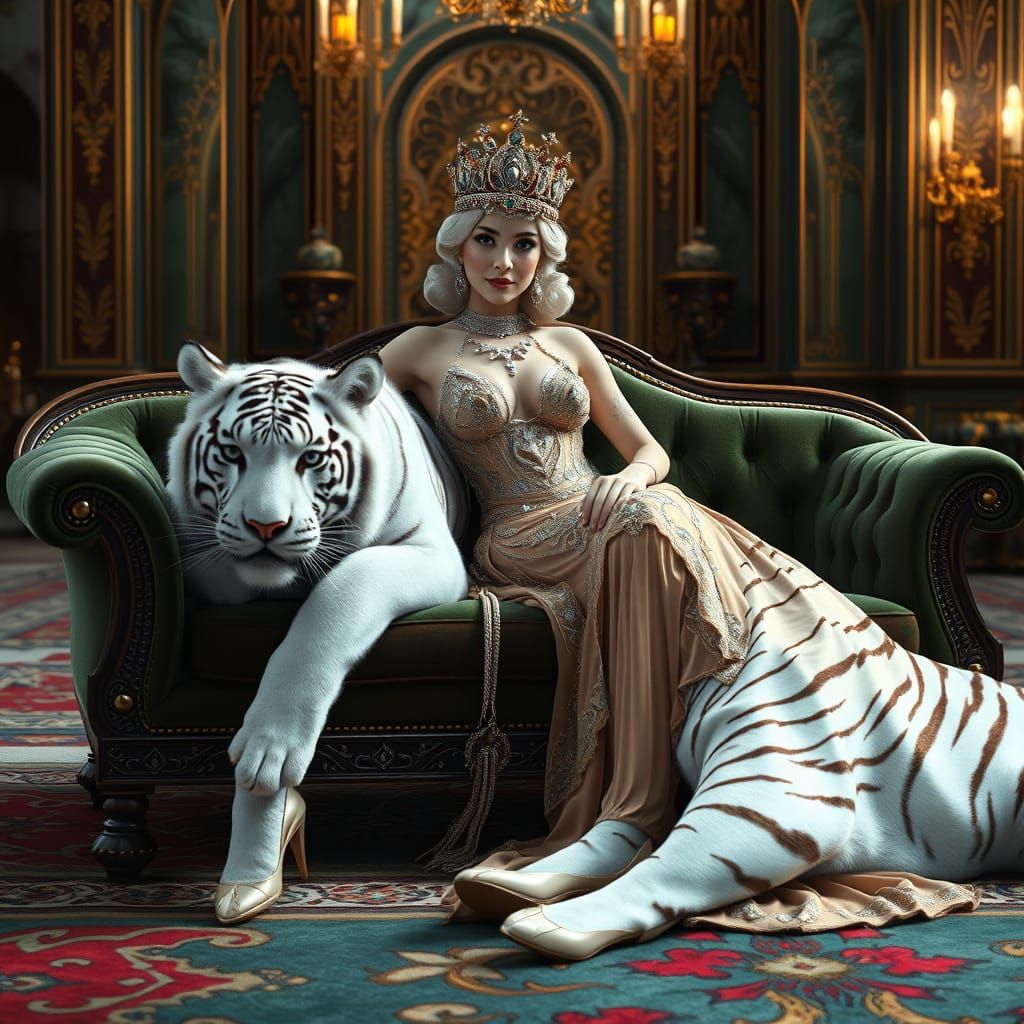 Surreal Fairy Tale Scene of Snow White with Happy Dwarves in...